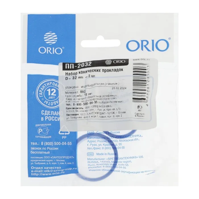 Прокладка коническая синего цвета, двухступенчатая диаметром 32 мм. Используется для надёжного соединение с корпусом сифона выпусков, патрубков и отводов в канализацию, диаметр которых 32 мм. В комплекте идут две одинаковые прокладки, которые фасуются в индивидуальный пакетик.
