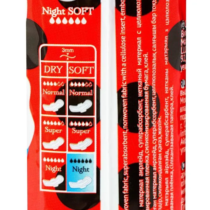 Ультратонкие прокладки, с уникальным материалом впитывающего слоя, благодаря содержанию гранул суперабсорбента, создают удерживающую способность, высокое качество и обеспечивает надежность в использовании. Поверхностный слой DRY из инновационной перфорированной пленки 3d, с воронкообразными микротверстиями, позволяет быстро впитывать жидкость, и не пропускать ее в обратном направлении, создавая при этом сухость поверхности прокладки. Увеличенная длина прокладки (300мм) гарантирует максимальную защиту от протеканий, уверенность и спокойствие. Каждая прокладка в индивидуальной упаковке.