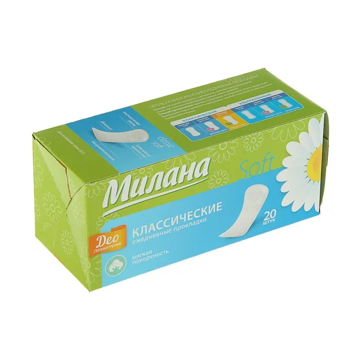 Описание: мягкие и нежные ежедневные прокладки анатомической формы, надежно крепятся к белью, обеспечивая гигиену и свежесть в течение всего дня. Хорошая впитываемость позволяет использовать прокладки ""Милана"" во время первого и/или последнего дня женского цикла. Легкий цветочный аромат обеспечит дополнительную свежесть и хорошее настроение.
