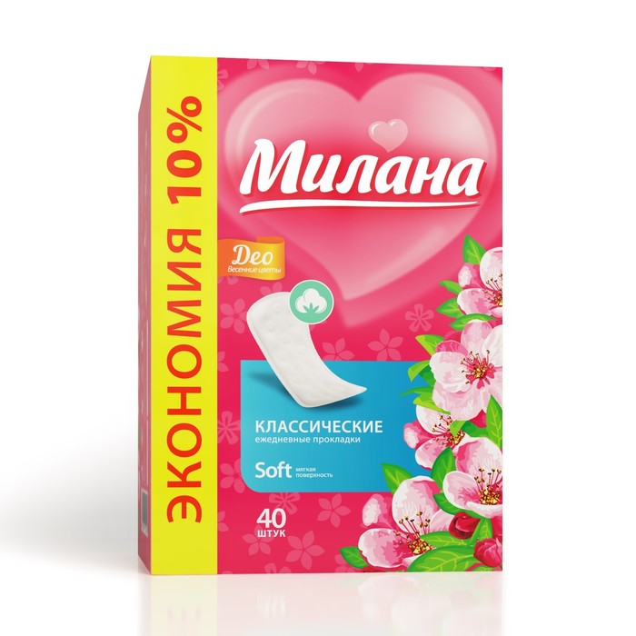 Описание: прокладки ежедневные «Милана» Classic Deo Soft цветы,40 шт/уп. Прокладки являются для женщин незаменимым гигиеническим средством. Они обеспечивают не только защиту, но и чистоту и комфорт. Прокладки ежедневные «Милана» Classic Deo Soft цветы,40 шт/уп изготовлены из материала, соответствующего всем стандартам качества. Они подарят ощущение лёгкости и свежести.