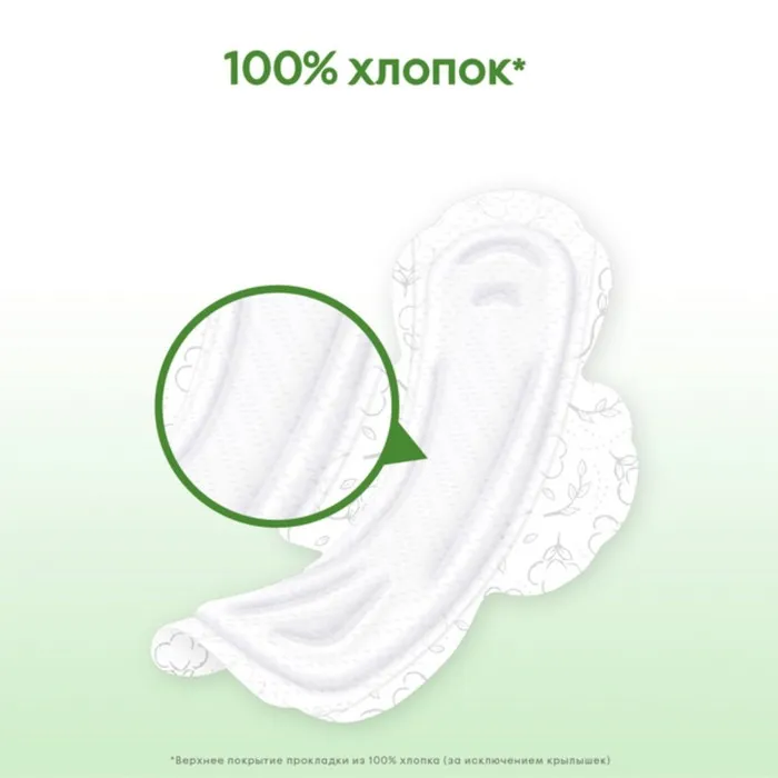 Верхнее покрытие прокладки из 100% хлопка (за исключением крылышек).