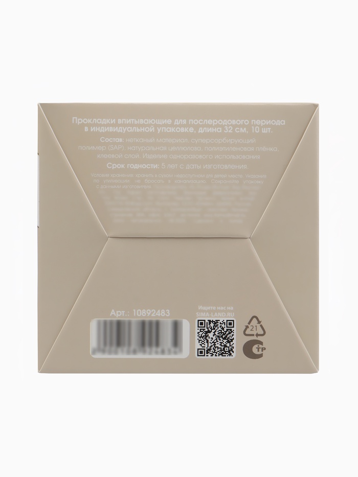 Прокладки послеродовые, размер XXL, длина 32 см, 10 шт., M&B — Характеристики