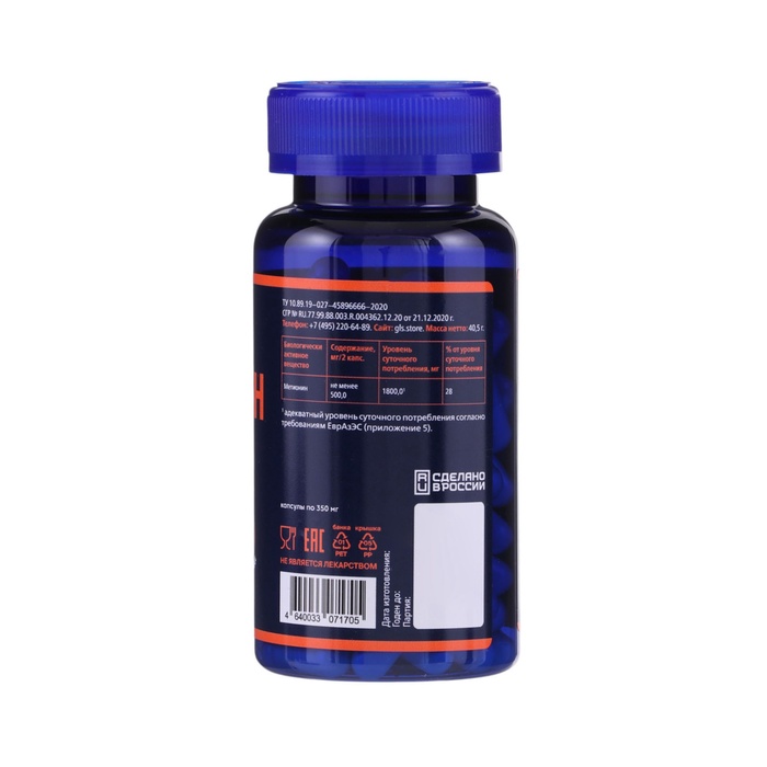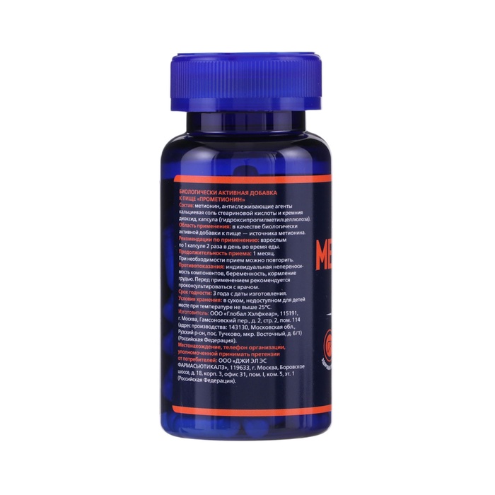 GLS ПРОМЕТИОНИН - Биологически активная добавка (БАД) к пище - Метионин - незаменимая аминокислота, необходима для синтеза холина и фосфолипидов, необходим для обмена серосодержащих аминокислот, адреналина, креатинина, цианокобаламина, аскорбиновой и фолиевой кислот, гормонов.
