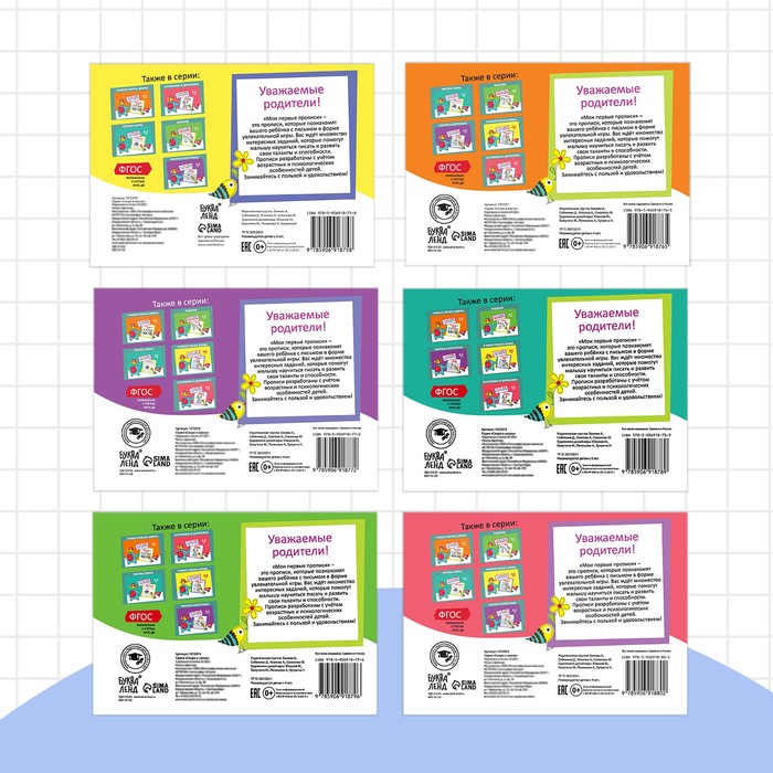 Серия «Мои первые прописи» познакомит ребёнка с письмом в форме увлекательной игры. Все элементы и картинки прорисованы толстым контуром, их удобно обводить и раскрашивать.