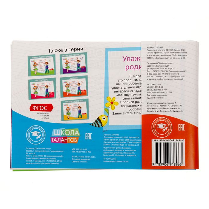 Прописи помогают ребёнку развивать мелкую моторику, внимание и координацию движений. Каждая страница предлагает задания, которые пробуждают интерес к обучению: от простых штрихов до написания букв и цифр. Раскрашивание картинок добавляет элемент творчества, делая процесс увлекательным. Такие занятия не только готовят руку к письму, но и учат быть аккуратным, терпеливым и внимательным к деталям.