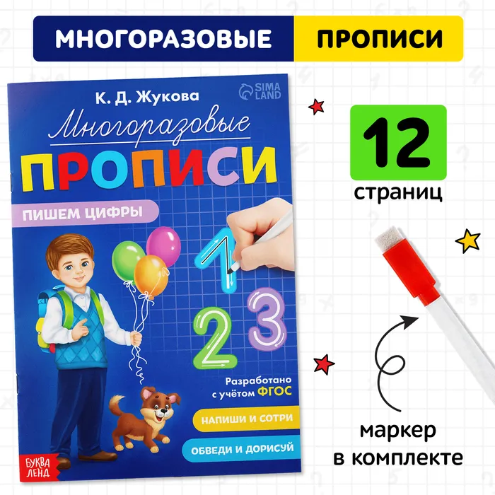 Прописи многоразовые «Пишем цифры», 12 стр., маркер — Характеристики