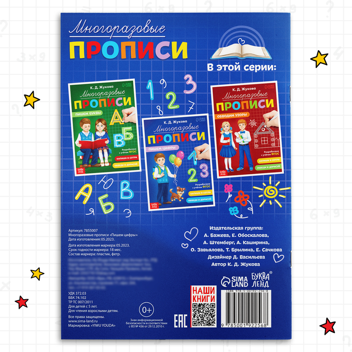 Прописи многоразовые «Пишем цифры», 12 стр., маркер — Характеристики