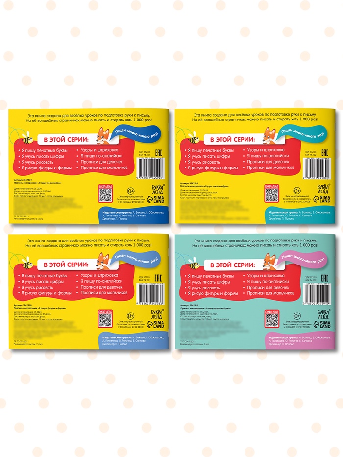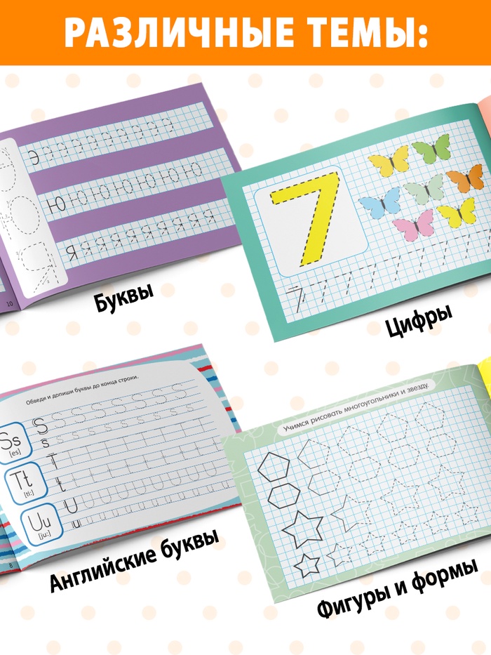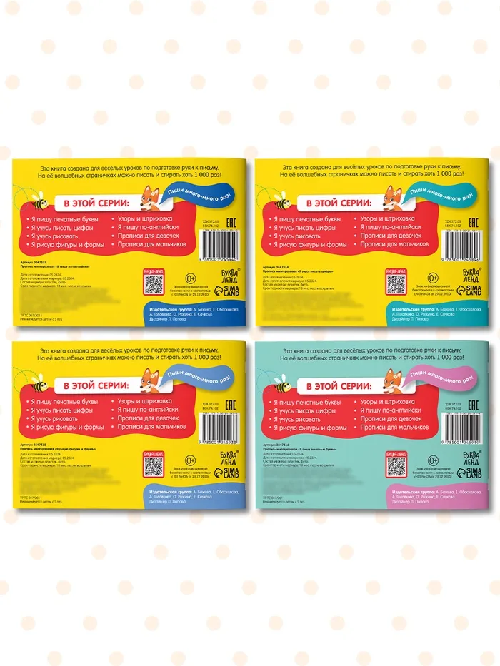 Прописи многоразовые с маркером набор 4 шт. №1, 12 стр. — Характеристики