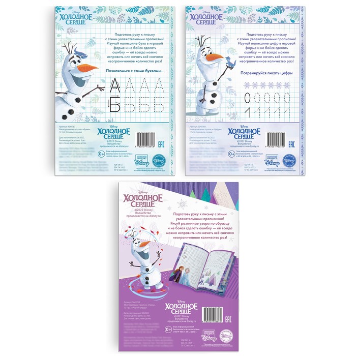 Прописи многоразовые «Учимся вместе с Анной и Эльзой», 3 шт. по 12 стр., Холодное сердце — Характеристики
