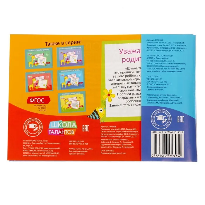 • 6 прописей, каждая с 20 страницами для развития разных навыков.