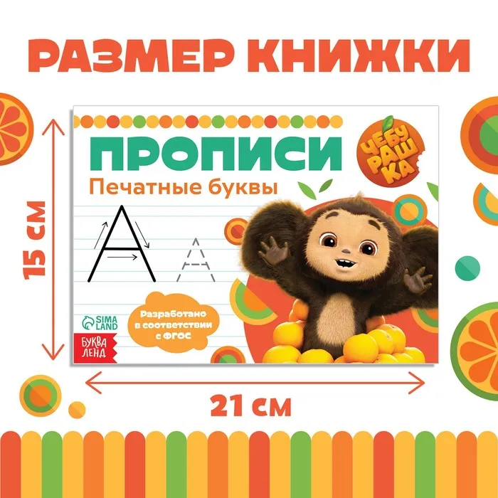 Прописи «Печатные буквы», А5, 20 стр., Чебурашка — Характеристики