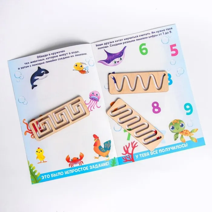 Набор станет отличным выбором для родителей, которые хотят развивать ребёнка с ранних лет. Он подойдёт для домашних занятий, а также для использования в детских садах и развивающих центрах. Удобный формат и яркие трафареты обязательно понравятся малышам!