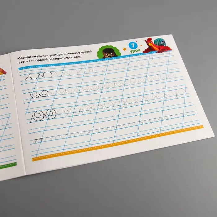 Внутри вы найдёте интересные задания. Выполняя их, малыш выучит буквы и подготовит руку к письму. Также в книге есть забавные иллюстрации с любимыми героями мультфильма «Маша и Медведь».