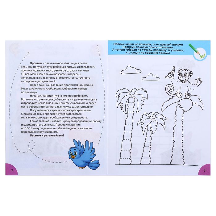 Увлекательные творческие задания и крупные рисунки помогут малышу развить внимательность, точность, координацию движений, мелкую моторику, воображение и усидчивость.