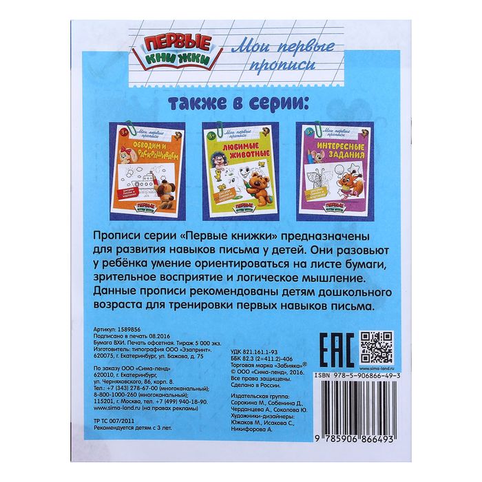 Также в серии прописей представлены: