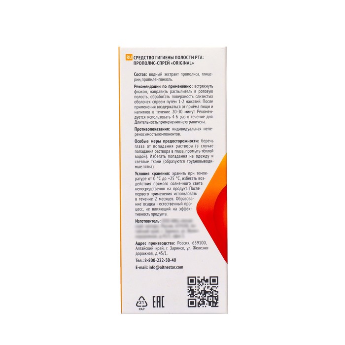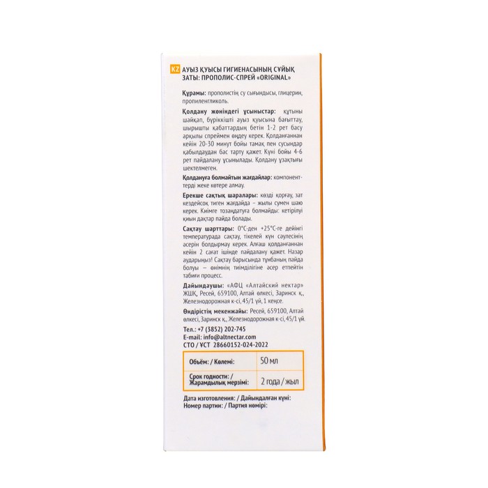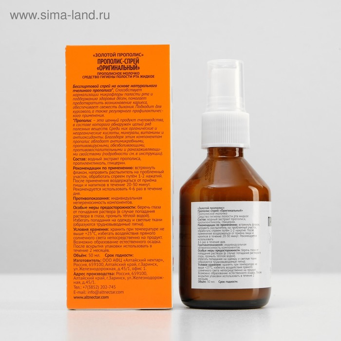 Прополис-спрей «Оригинальный» безалкогольный, от простуды, 50 мл — Характеристики