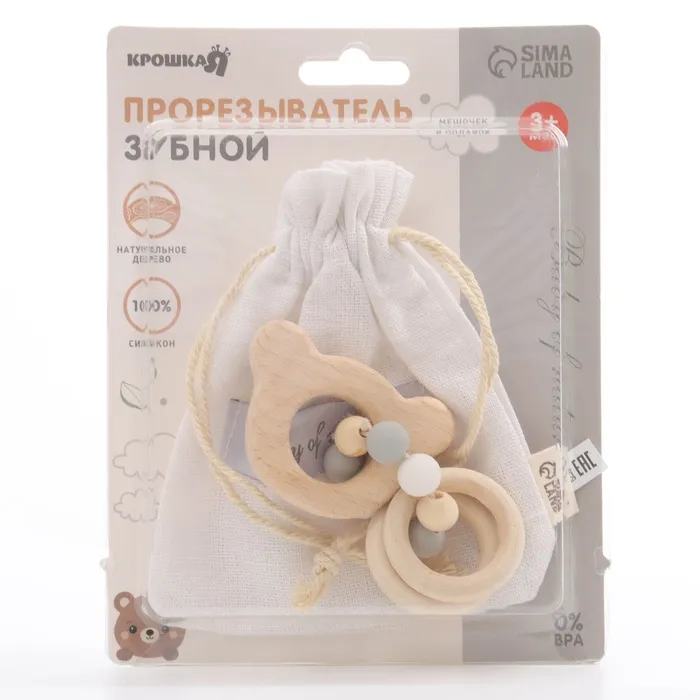 Прорезыватель Мишка снимает неприятные ощущения в период появления первых зубов. Также изделие подготовит ребёнка к процессу жевания, поспособствует формированию правильного прикуса и развитию мелкой моторики рук.