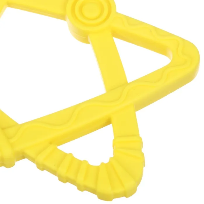 Форма ручки и размеры разработаны специально для детской ладони, поэтому малышу будет удобно её держать. Рельефная структура на поверхности изделия и его дополнительных элементов будет способствовать развитию мелкой моторики, а яркие цвета — формированию визуального восприятия мира.