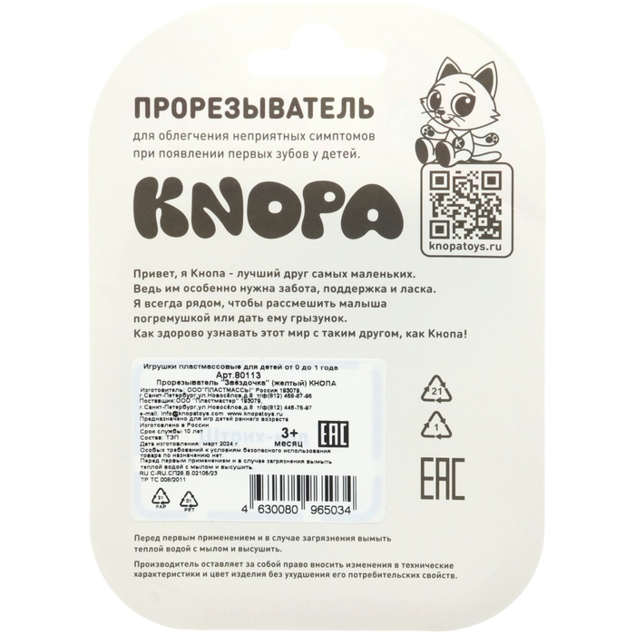 Товар изготовлен из прочного и безопасного материала (силикона) и рекомендован для использования детками с 3 месяцев.