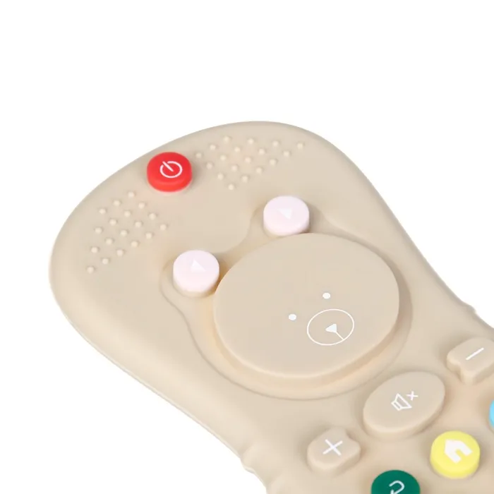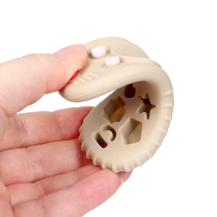 - Прорезыватель выглядит как миниатюрный пульт управления, что делает его интересным для детей.