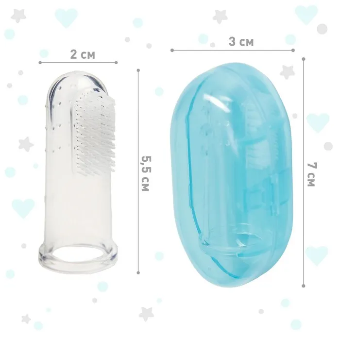 Прорезыватель - массажер Крошка Я 3 в 1, детский в контейнере, на палец, силиконовый от 3 мес., голубой — Характеристики
