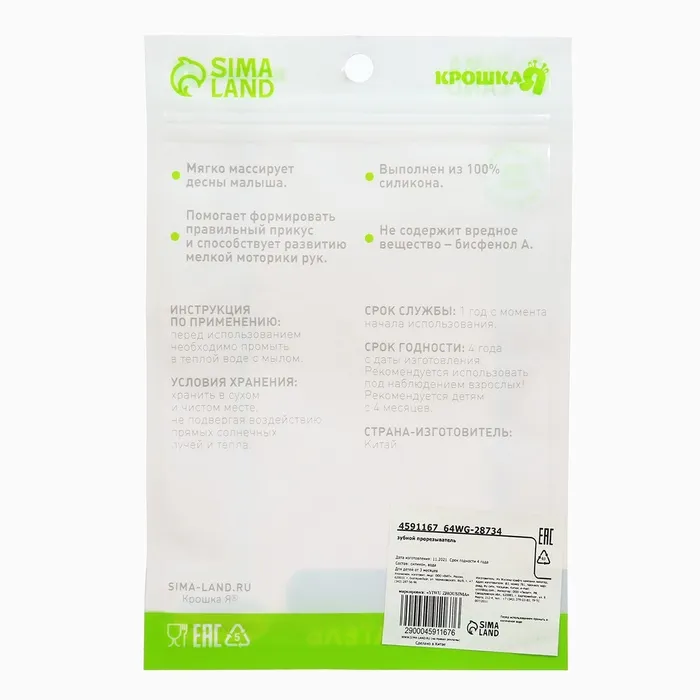 Товар изготовлен из прозрачного и безопасного материала и рекомендован для использования детками с 3 месяцев.