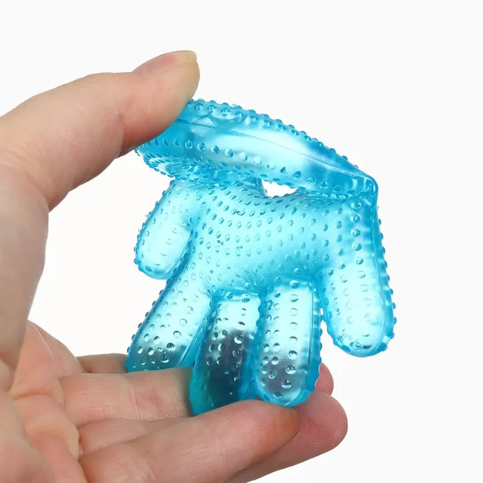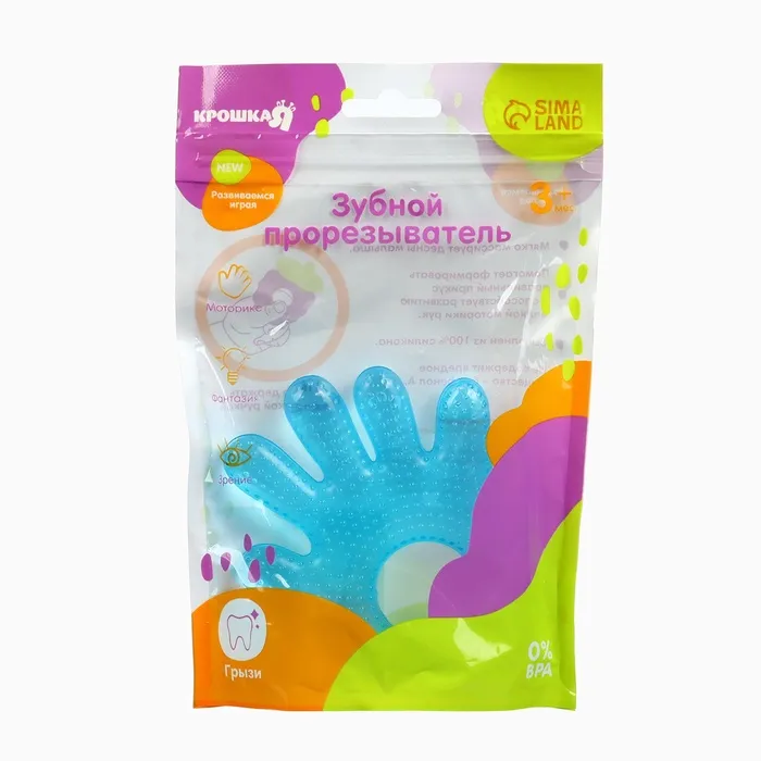 Игрушка-прорезыватель эффективно массирует дёсны малыша и уменьшает дискомфорт при появлении первых зубов. Внутри она заполнена дистиллированной водой. Поместите прорезыватель на 10–15 минут в холодильник, и вы добьётесь охлаждающего эффекта, способного снять болевые ощущения.