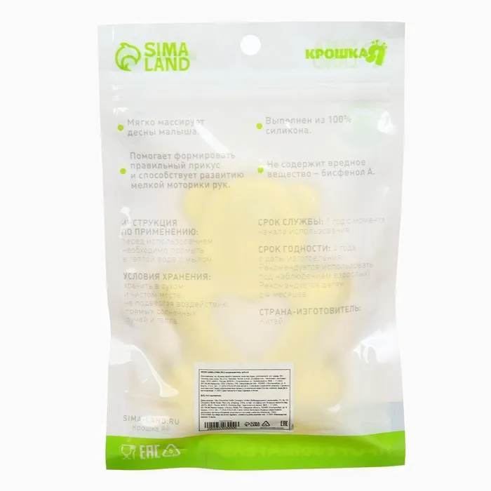 Форма и размеры изделия разработаны специально для детской ладони. Его рельефная текстура будет способствовать развитию мелкой моторики, а яркие цвета — формированию визуального восприятия у ребёнка.