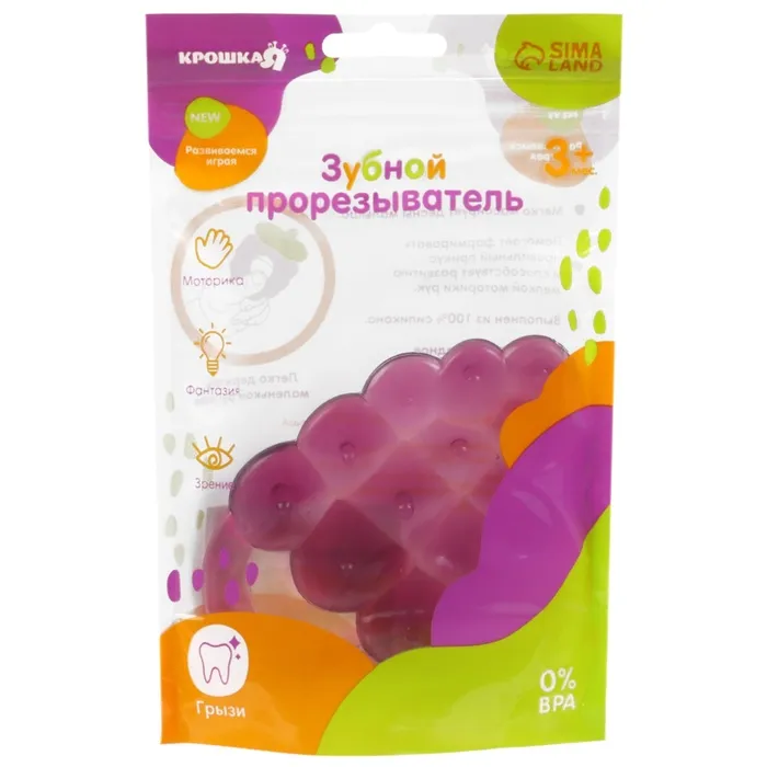 Специальная жидкость внутри поможет снизить воспаление в ротовой полости и снять болевые ощущения. Для охлаждения прорезывателя поместите его в холодильник на 10‒15 минут. Форма ручки и размеры разработаны специально для детской ладони, поэтому малышу будет удобно её держать. Рельефная структура на поверхности изделия и его дополнительных элементов будет способствовать развитию мелкой моторики, а яркие цвета — формированию визуального восприятия мира.