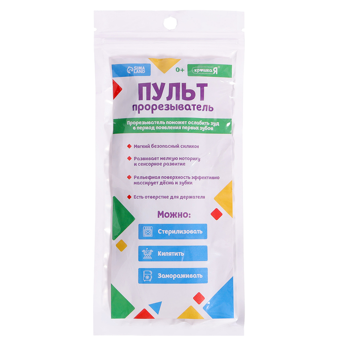Прорезыватель «Пульт» привлечёт внимание реалистичным дизайном и надолго займёт малыша. Игрушка поможет облегчить боль при прорезывании зубов, а также потренировать мелкую моторику, тактильные ощущения и воображение.