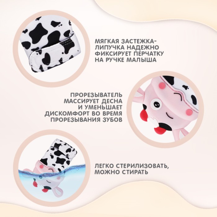 Прорезыватель рукавичка «Коровка», на липучке, МИКС — Характеристики