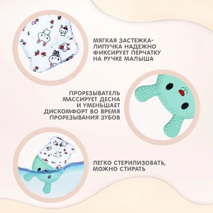Подарите малышу комфорт и безопасность в этот важный период его развития. Рукавичка-прорезыватель «Зайка» станет вашим надёжным помощником, который всегда под рукой!