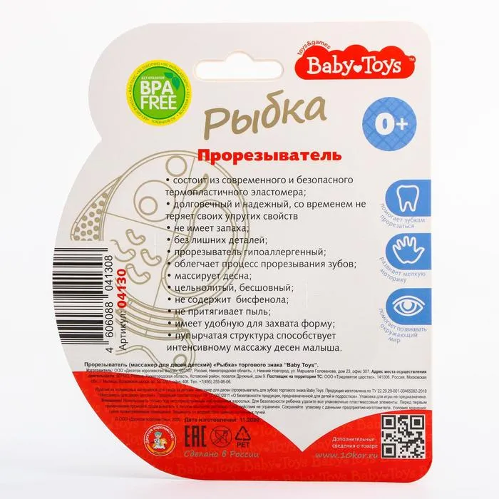 Товар изготовлен из прозрачного и безопасного материала и рекомендован для использования детками с 3 месяцев.