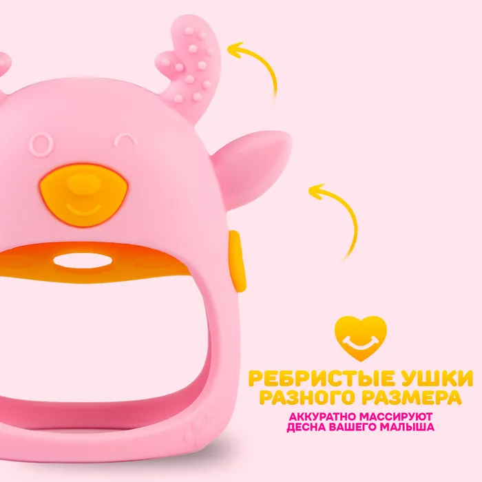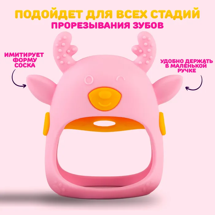 Прорезыватель силиконовый для зубов на ручку «Олененок», от 0 мес., розовый — Характеристики