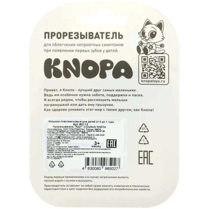Товар изготовлен из прочного и безопасного материала (силикона) и рекомендован для использования детками с 3 месяцев.