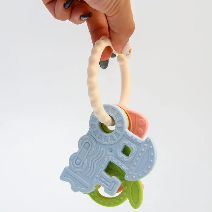 Форма ручки и размеры разработаны специально для детской ладони, поэтому малышу будет удобно её держать. Рельефная структура на поверхности изделия и его дополнительных элементов будет способствовать развитию мелкой моторики, а яркие цвета — формированию визуального восприятия мира.