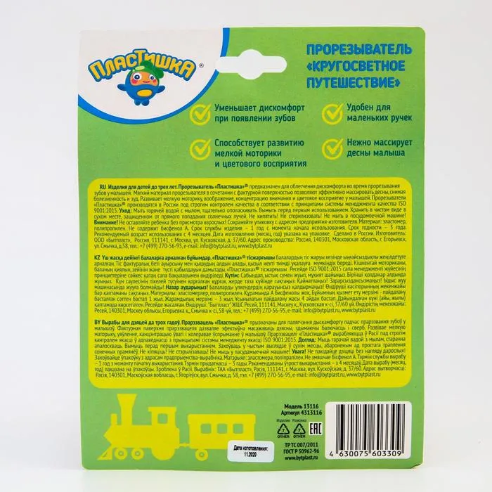 Товар изготовлен из прозрачного и безопасного материала и рекомендован для использования детками с 3 месяцев.