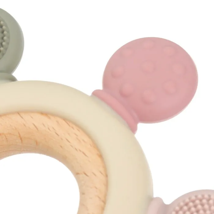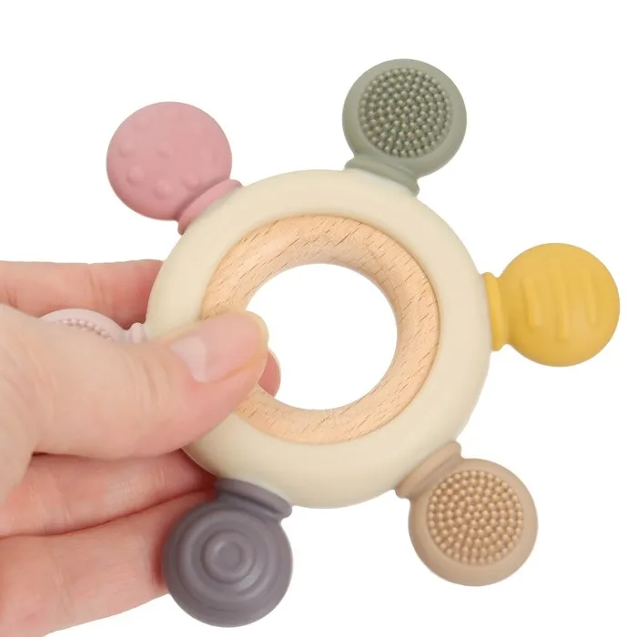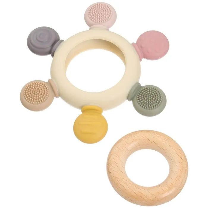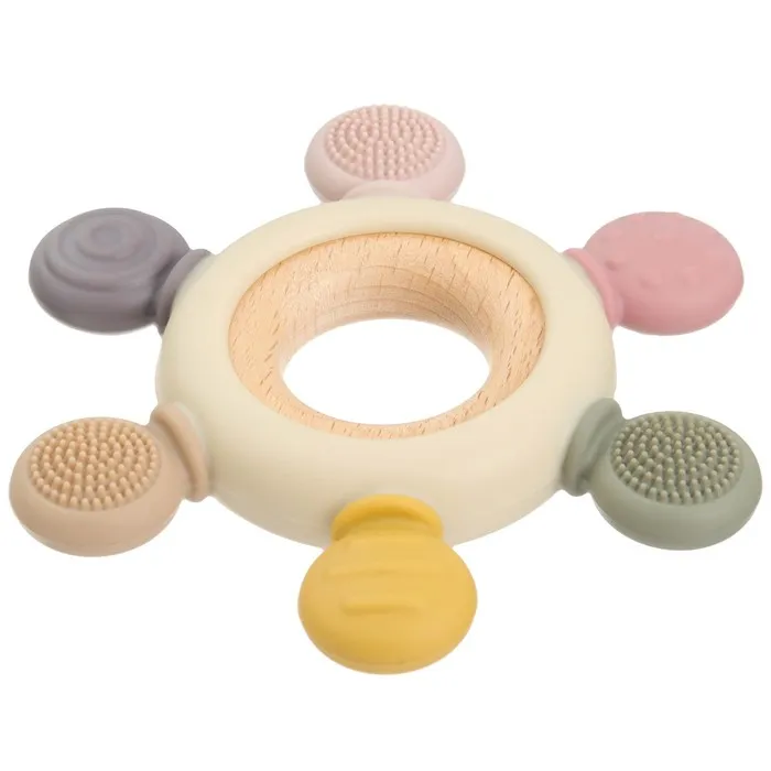 Прорезыватель снимает неприятные ощущения у малыша в период появления первых зубов. Также изделие подготовит ребёнка к процессу жевания, поспособствует формированию правильного прикуса и развитию мелкой моторики рук.