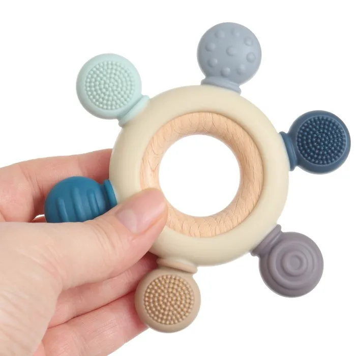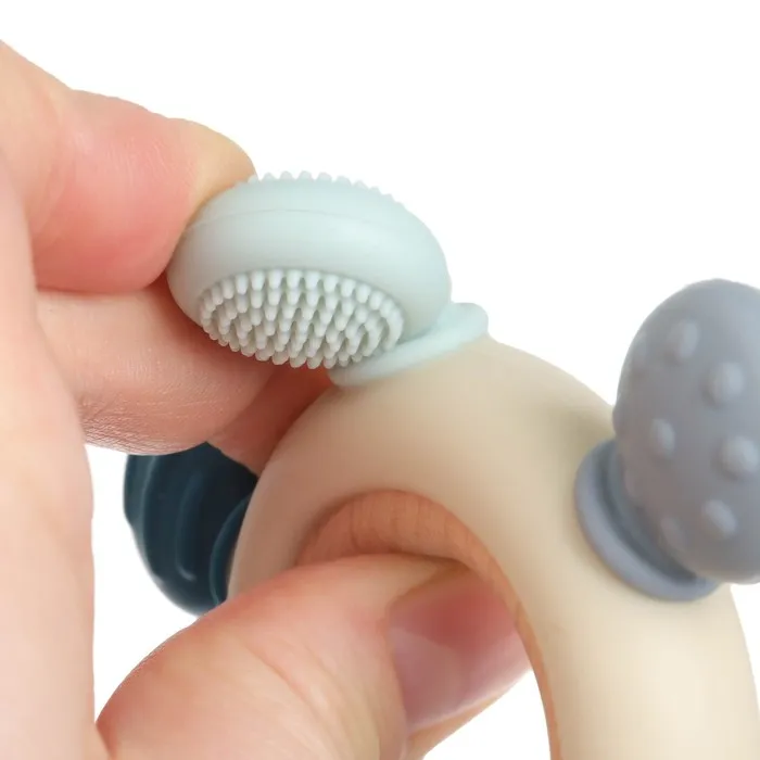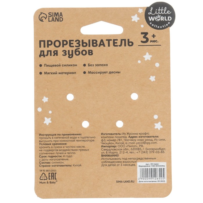 Прорезыватель снимает неприятные ощущения у малыша в период появления первых зубов. Также изделие подготовит ребёнка к процессу жевания, поспособствует формированию правильного прикуса и развитию мелкой моторики рук.