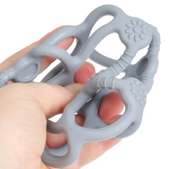 Прорезыватель снимает неприятные ощущения у малыша в период появления первых зубов. Также изделие подготовит ребёнка к процессу жевания, поспособствует формированию правильного прикуса и развитию мелкой моторики рук.