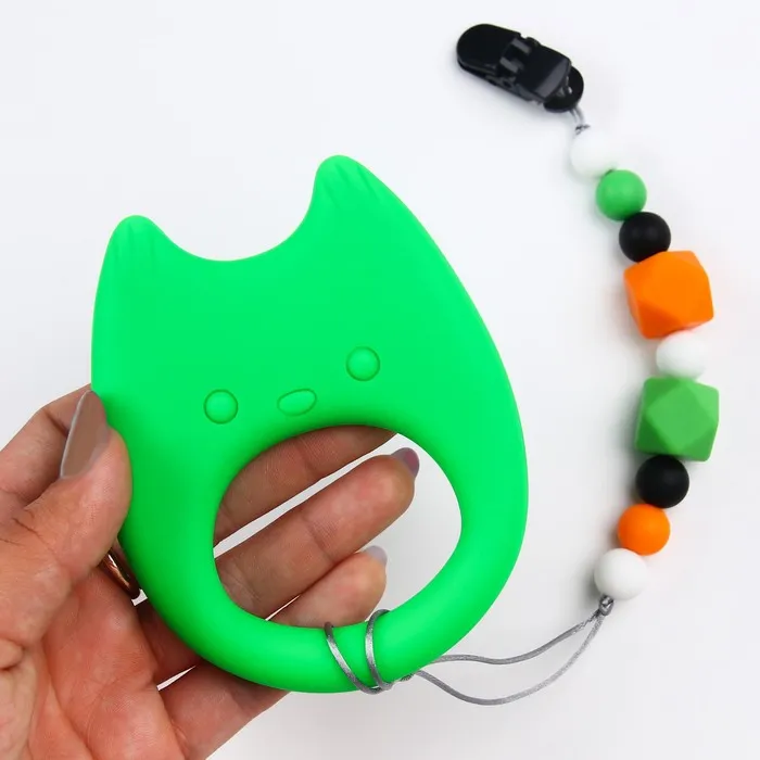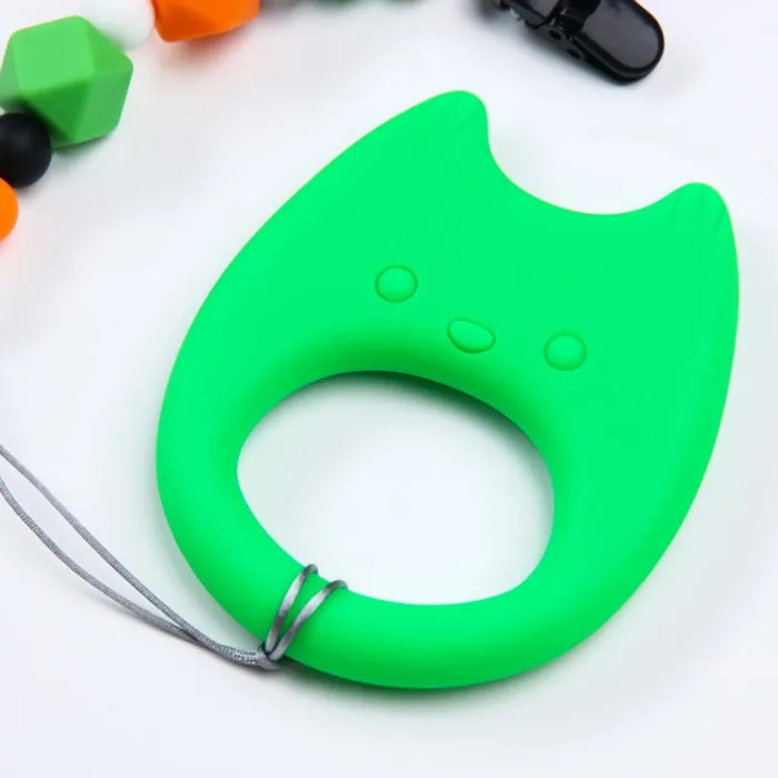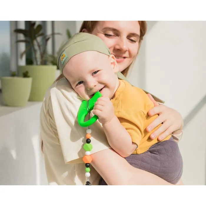 Прорезыватель снимает неприятные ощущения в период появления первых зубов. Также изделие подготовит ребёнка к процессу жевания, поспособствует формированию правильного прикуса и развитию мелкой моторики рук.