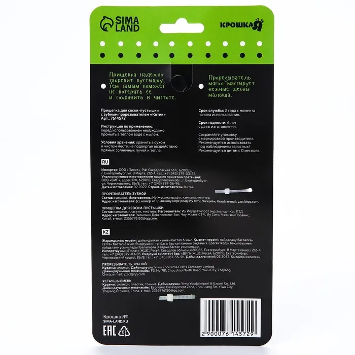Прорезыватель силиконовый на держателе Крошка Я «Котик», от 0 мес. — Характеристики