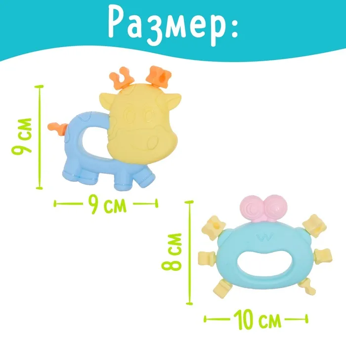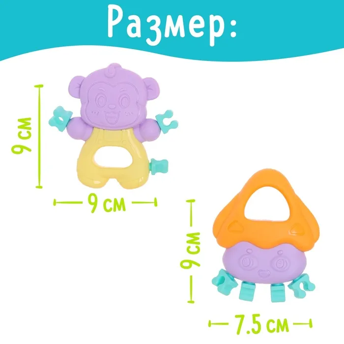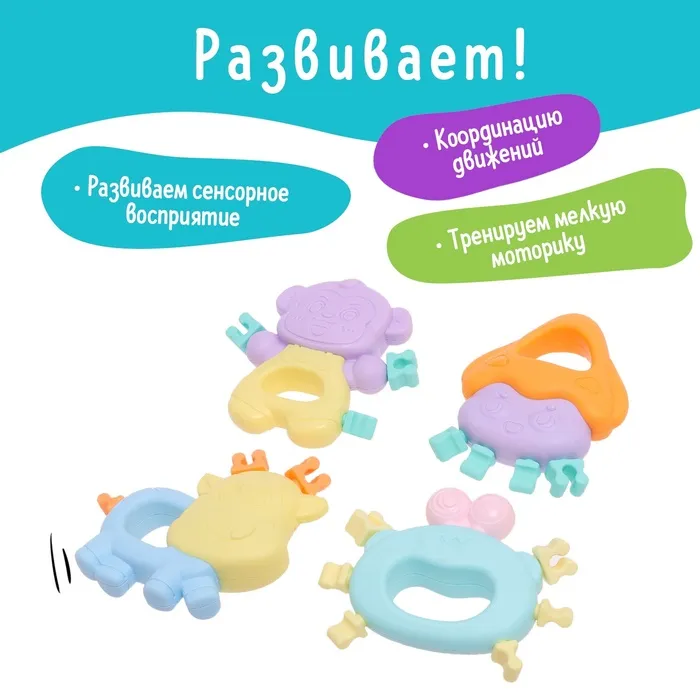 Набор из 4 прорезывателей «Забавные зверята» привлечёт внимание ярким дизайном и надолго займёт малыша. Игрушка поможет облегчить боль при прорезывании зубов, а также потренировать мелкую моторику, тактильные ощущения и воображение.