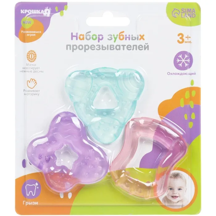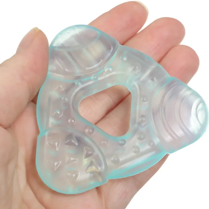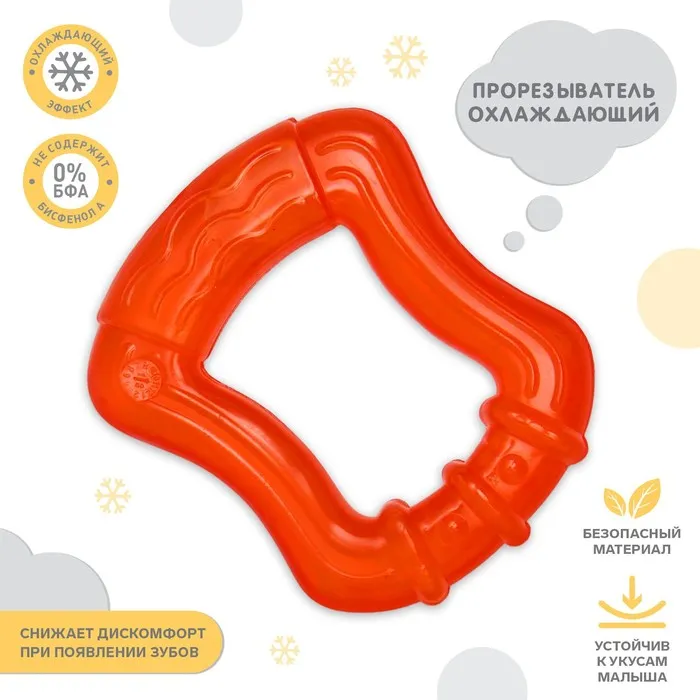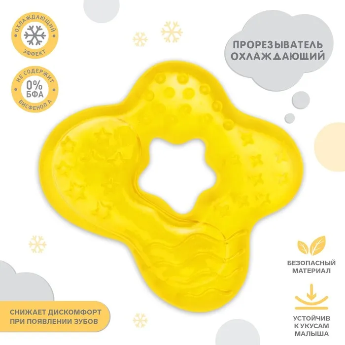 Специальная жидкость внутри поможет снизить воспаление в ротовой полости и снять болевые ощущения. Для охлаждения прорезывателя поместите его в холодильник на 10‒15 минут. Форма ручки и размеры разработаны специально для детской ладони, поэтому малышу будет удобно её держать. Рельефная структура на поверхности изделия и его дополнительных элементов будет способствовать развитию мелкой моторики, а яркие цвета — формированию визуального восприятия мира.
