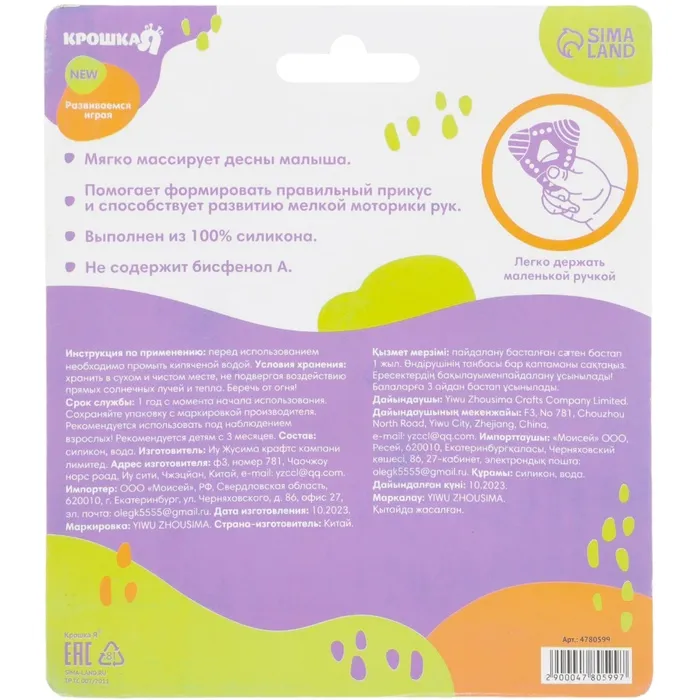 Товар изготовлен из прочного и безопасного материала (силикона) и рекомендован для использования детками.