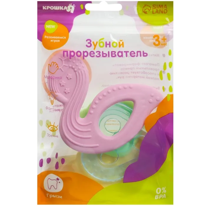 Применение такого прорезывателя уменьшит отёки и зуд в дёснах, поможет малышу быстрее успокоиться.