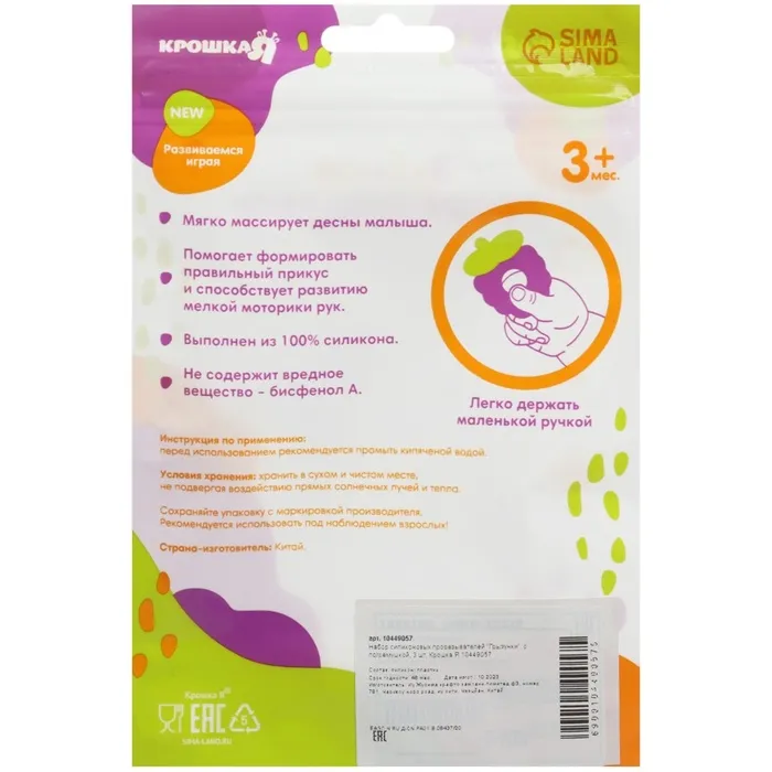 Прорезыватели силиконовые для зубов Крошка Я «Грызунки», с погремушкой, набор 3 шт. — Характеристики