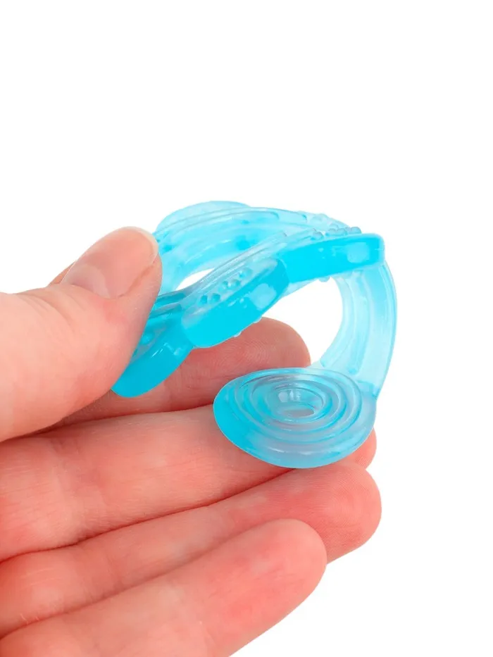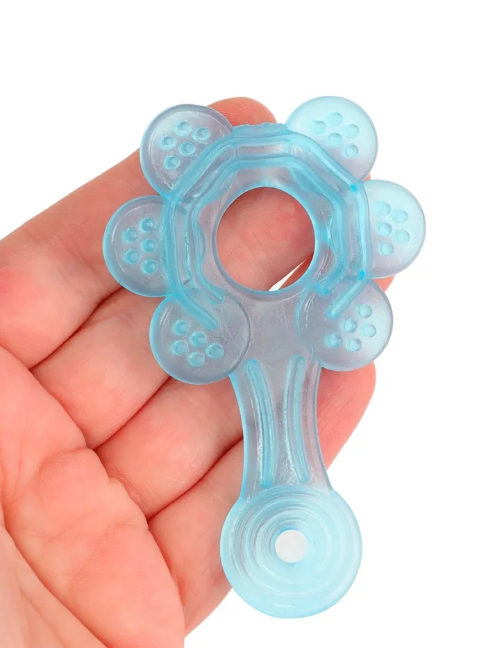 Применение такого прорезывателя уменьшит отёки и зуд в дёснах, поможет малышу быстрее успокоиться.