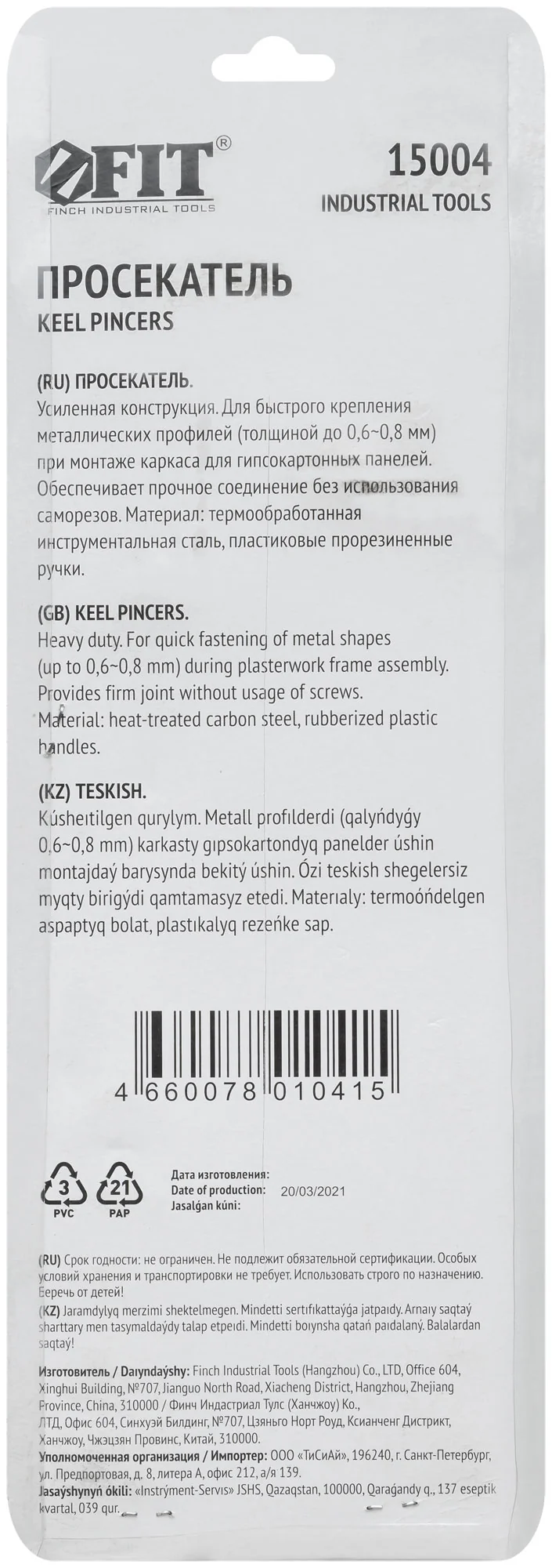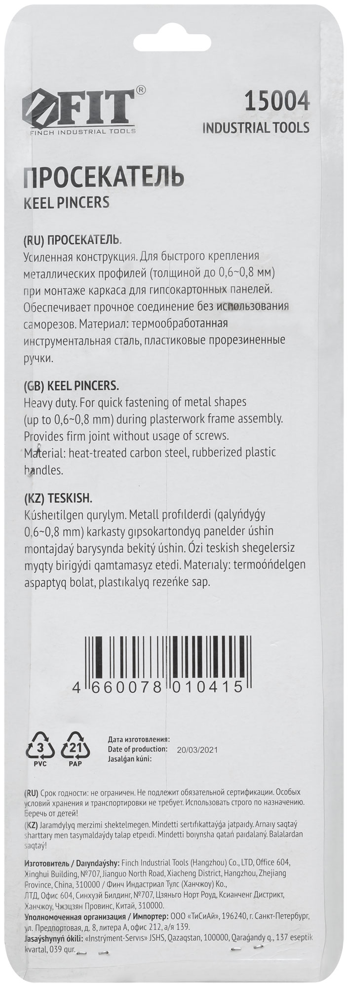 Этот усиленный просекатель от FIT — идеальный инструмент для быстрого и надежного крепления металлических профилей при монтаже каркасов для гипсокартонных панелей. Он позволяет создать прочное соединение без использования саморезов, что существенно ускоряет процесс работы.