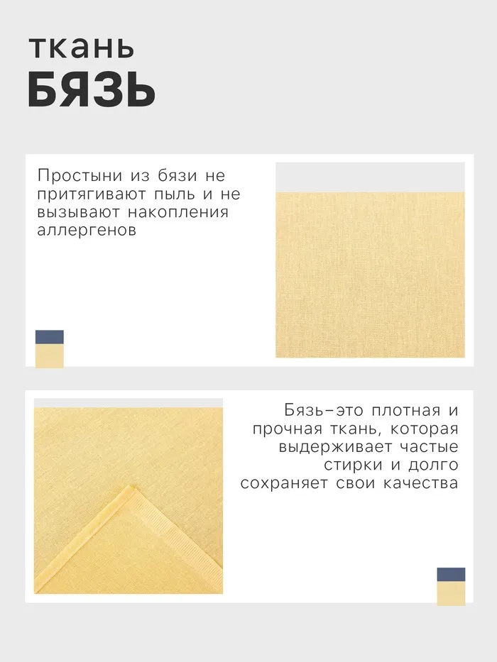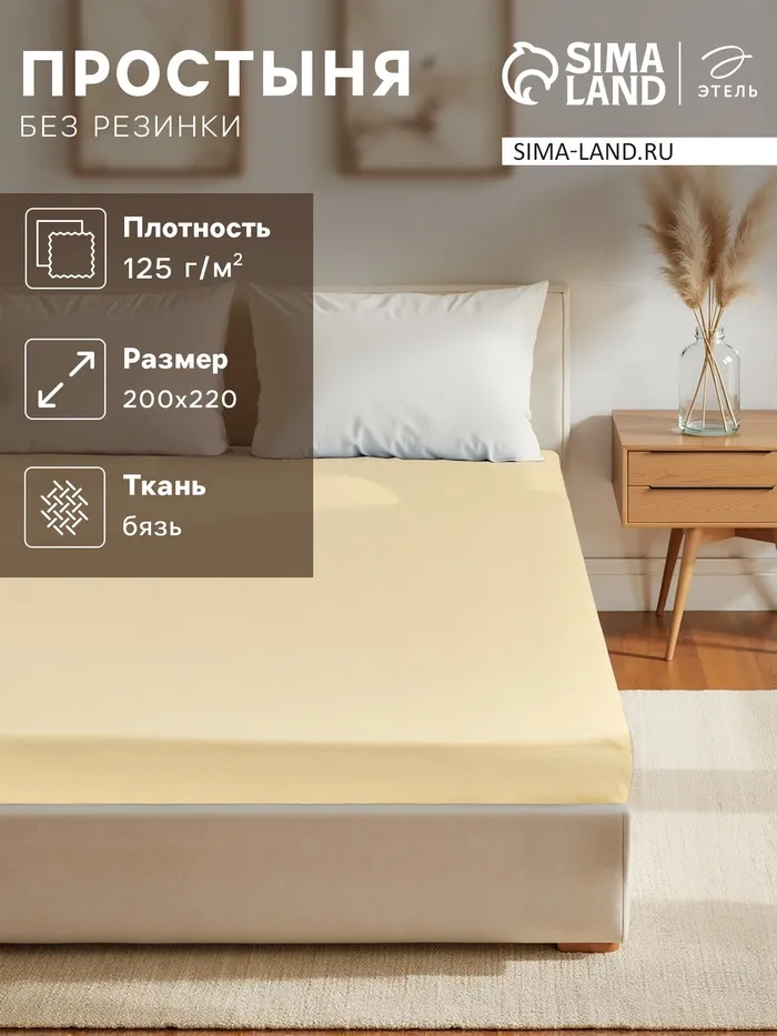 Простыня 2 спальная «Этель», 200×220 см, жёлтая, бязь, хлопок 100% — Характеристики